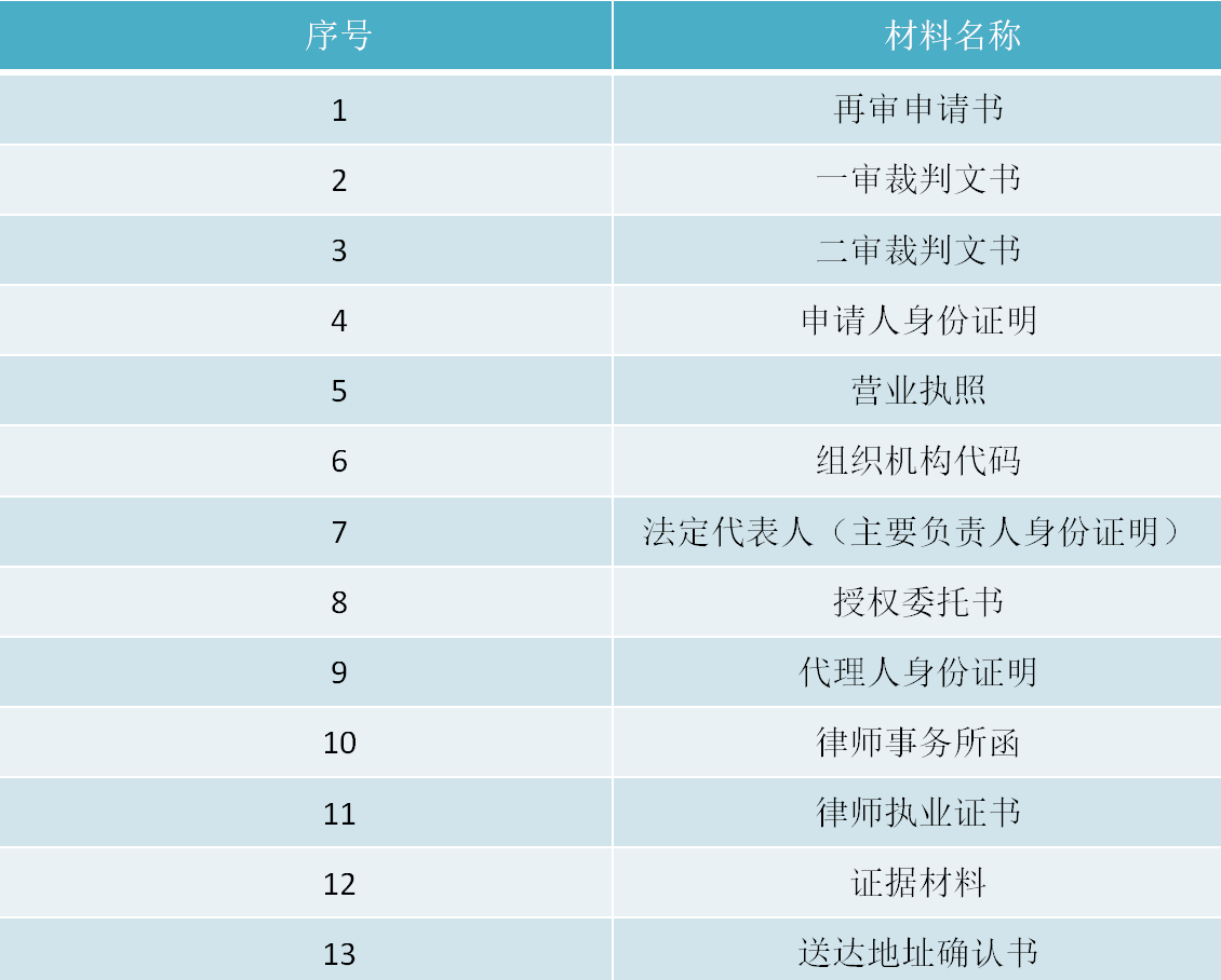 第七条 当事人申请再审,一般还应当提交下列材料:
